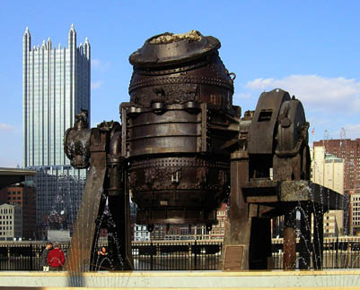 Industry is in Our NatureBessemer converter at Station Square, looking across Monongahela River to downtown Pittsburgh. Southside Trail, on Three Rivers Trail segment of Great Allegheny Passage |
