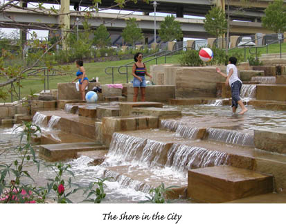 The Shore in the CityThis very popular public fountain cascades down to the edge of the trail, which is right beside the river. This is part of Pittsburgh’s very successful redevelopment of the riverfronts as public recreational space. To the enormous credit of the Powers that Be, playing in the fountain is not forbidden. |