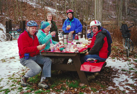 New Years' Day PicnicPicnic stop at the end of Pinkerton High Bridge, New Years' Day 2000. |
