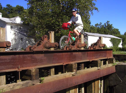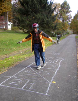 HopscotchThe village of St George, between the Rockland and Kennerdell tunnels. The roads aren’t paved in this small riverside village, so the trail is not only out of traffic; it’s also the only paved place in the village. |