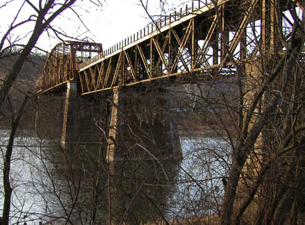 Allegheny-Sandy ConnectionConnecting the Allegheny River Trail and the Sandy Creek Trail The Allegheny River trail runs at river level. The East Sandy Creek Trail crosses the Allegheny on the spectacular Belmar Bridge, then crosses East Sandy Creek several times on high bridges. Eventually we hope to see a graded trail connection, but for now we have stairs down from the Belmar Bridge to the trail at river level. |