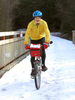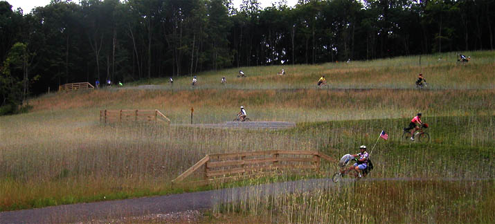 VolunteersThe tractor driver is the head of a group of mostly-retired volunteers who do most of the maintenance and much of the construction on the Youghiogheny River Trail North. The biker is a leader of trail development on the Montour and Panhandle trails. |