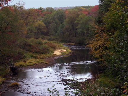 Creek ViewThis trail runs up a fine little valley. Because of the high crossing of the Allegheny River, the first few miles are high above the creek. Eventually, the creek’s gradient brings the creek up near the trail, and east of the tunnel the two are not far apart. |