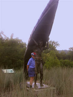 Portage TrailIndians used to portage canoes from the Tuscarawas River to the south up to the Cuyahoga River north of Akron. This provided a connection between the Ohio River and Lake Erie. The endpoints of the portage path – both on the Ohio and Erie Towpath Trail -- are commemorated with this larger-than-life statue. This is the statue at the Cuyahoga River end. |