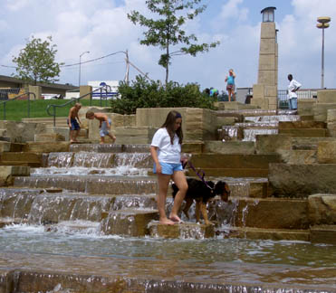 Dancing FountainThree Rivers Heritage Trail section of Great Allegheny Passage The dancing fountain in Station Square, just across from downtown. This fountain is choreographed to music; we call it the “dancing fountain”. Here, people are dancing in the spray. This is part of Pittsburgh’s very successful redevelopment of the riverfronts as public recreational space.