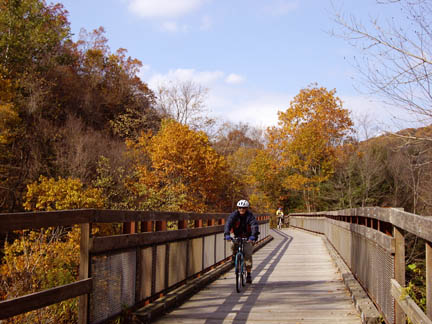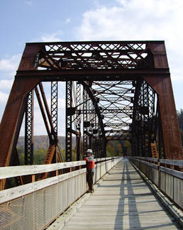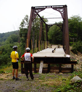 Anticipating the Bollman BridgeAllegheny Highlands segment of the Great Allegheny Passage in Pennsylvania This historic 135-year-old cast-iron Bollman bridge once carried the B&O railroad over Wells Creek. It has been moved to carry the Great Allegheny Passage over Scratch Hill Rd. The approaches to the bridge are still under construction, and the trail community eagerly anticipates the finishing touches