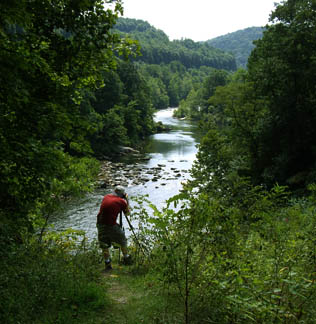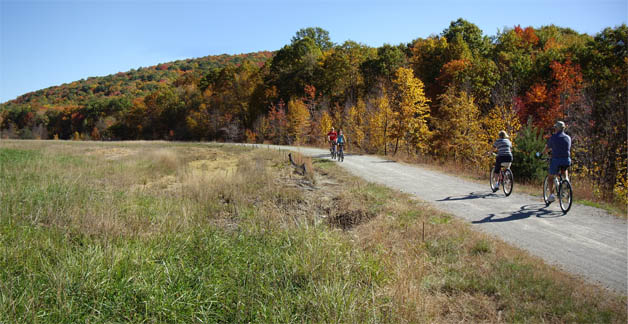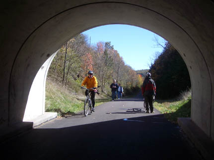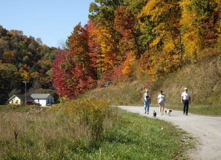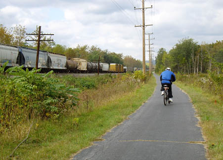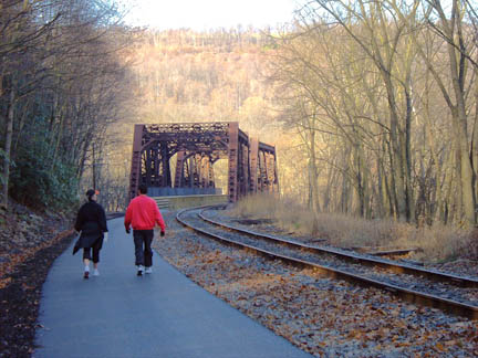Following the Train WestStavich Recreation Trail in western Pennsylvania The active railroad runs alongside the interurban line that has been converted to the trail |