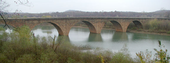 Stone Arches over Conemaugh RiverBelow the flood control dam, the original arch bridges emerge from a tunnel that is now closed; bicyclists must go over the ridge that the tunnel goes through. The relocated railroad crosses over the original stone bridge, which carries the trail over the river here |