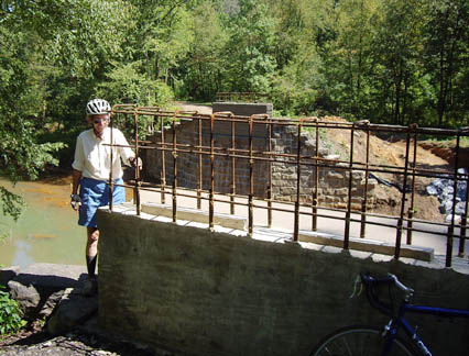 Anticipation: Bridge Construction near DilltownContinuity of the Ghost Town Trail has been interrupted by two missing bridges west of Dilltown, which were washed out in a flood. Summer 2009 saw reconstruction of those bridges |