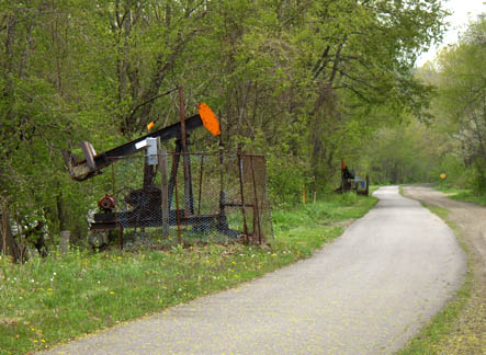 Donkey EngineThe oil industry was born in this region, and oil is still produced here. Several of these donkey engines beside the trail extract oil from small wells