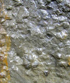 FossilsThe Wymps Gap fossil bed emerges beside the trail.