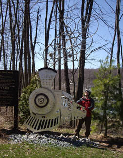 Train art at RockwoodThe Rockwood trailhead of the Great Allegheny Passage features this sculpture, which celebrates conversion of the railroad grade to a bicycle/pedestrian trail. |