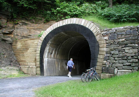 Staple Bend TunnelThis is the oldest railroad tunnel in the United States. Until the trail was built, it was rarely accessible to the public |