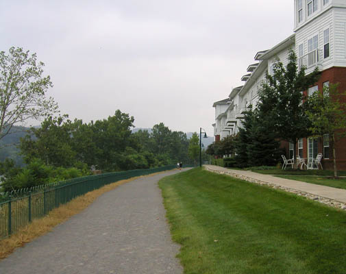 Trail at The WaterfrontThe path runs between the condos and the Mon River at The Waterfront. Photo by Roy Weil