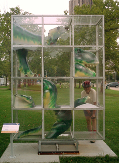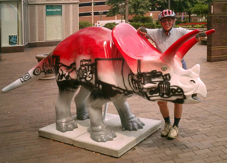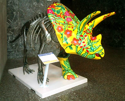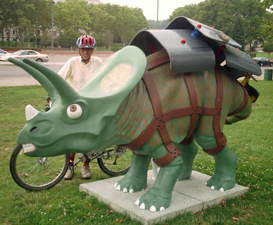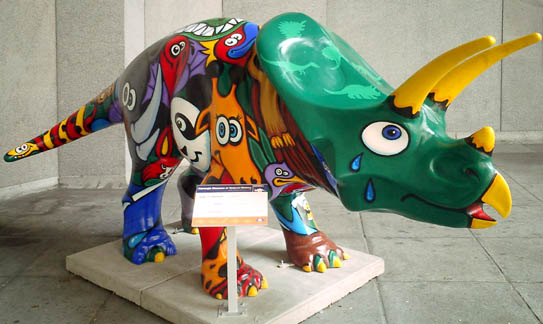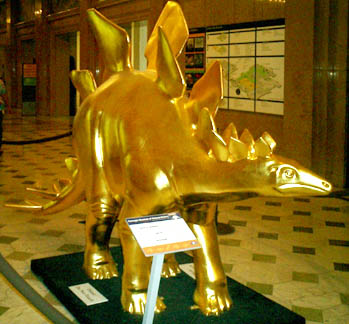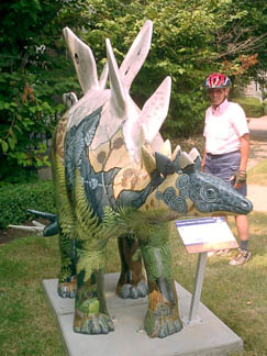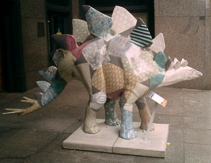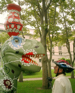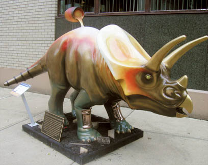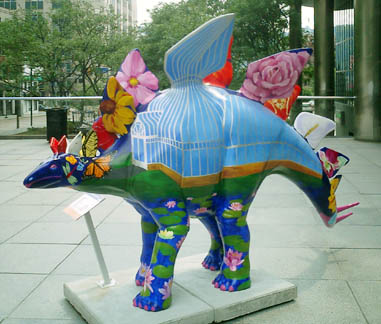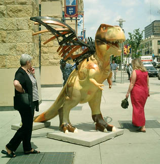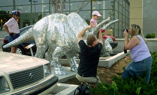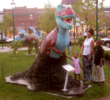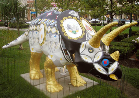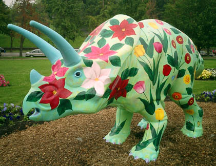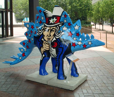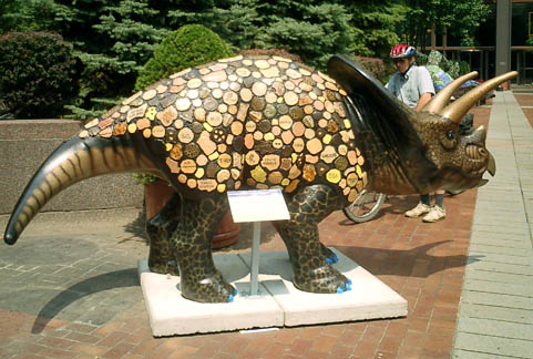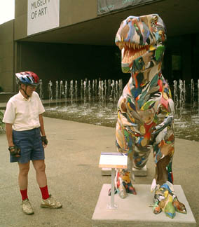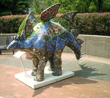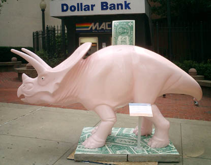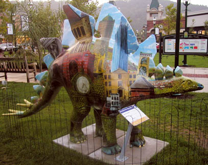 Chicago had cows, now Pittsburgh has dinosaurs. The Carnegie Museums and the City of Pittsburgh are hosting DinoMiteDays, a summer-long city-wide art-in-the-streets event. For us, it's 100 fiberglass dinosaurs. Artists from across the country competed for the chance to decorate them, regional companies have sponsored them, and they're on display in public places around the region. In October they'll be auctioned off to benefit the Carnegie Museum's world-class dinosaur exhibit. On display: