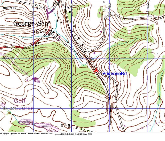 The trail owns a parcel of land between mile post 19 and peacock cut. It is the open area on the left, going south. The lot lies between Primrose Road and the trail. There was formerly a trailer on the adjacent lot; the concrete pad and some debris remain. Beside the trail there are a trail gate there are large rocks; the lot is just grass, no trees.