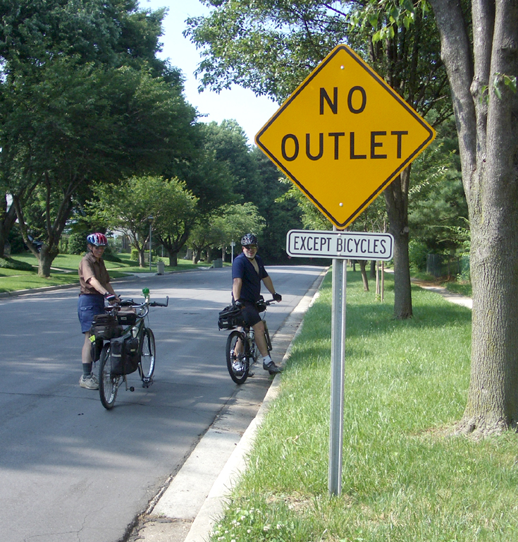 This street is a dead end, but a bicycle trail leads from the end of the trail into the woods