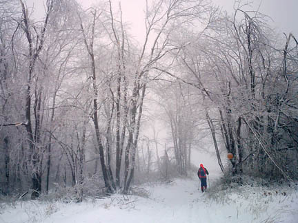 Snowy Day on Laurel RidgeLaurel Ridge State Park hosts a network of cross-country ski trails. This was a quiet day after a snow, with the sun glowing behind the clouds. |