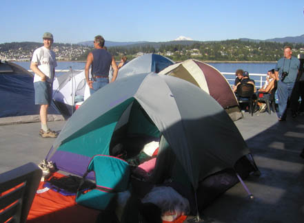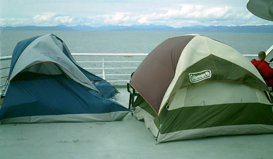 There aren't enough cabins on the ferry, but it's fine to camp out on the deck.