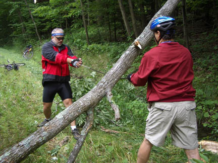 We Saw the TreeAllegheny Highlands section of the Great Allegheny Passage NRT, between Rockwood and Confluence, PA Most of the Great Allegheny Passage runs on wooded hillsides, and it’s not uncommon for storms to bring down trees. Several of us carry pocket chainsaws (they roll up into a 3-4” tin), and when we find the trail blocked we hold impromptu work parties instead of beating paths around the obstacles.