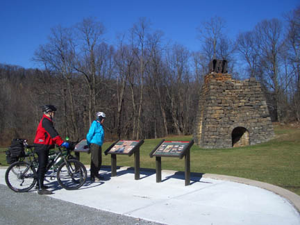 Interpreting Eliza FurnaceGhost Town National Recreational Trail at Eliza Furnace, PA The Eliza Furnace is one of the best-preserved hot blast iron furnaces in Pennsylvania; it’s on the National Register of Historic Sites. A trailside pullout provides interpretive signage, and the lawn provides a picnic area. |