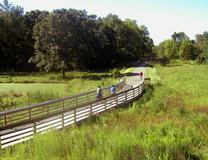 Trail RampCuyahoga Valley National Recreation Area, south of Cleveland OH A long ramp carries the trail across a waterway and wetlands |