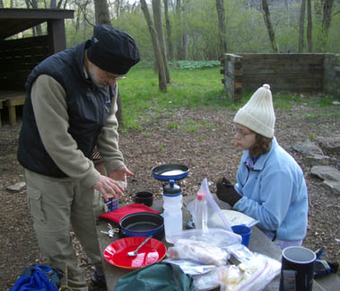 Trailside CookingRoundbottom Campground, between Dawson PA and Layton PA The Great Allegheny Passage, together with the C&O Canal Towpath, provides one of the greatest bicycle camping tour in the east. Both have free trailside campgrounds with picnic tables, water, toilet, river access, and room to set up tents. Here you can also see the Adirondack-style shelter provided at some of the campsites along the Great Allegheny Passage. |