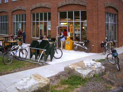 Trailside ShopMorgantown WV. A former industrial building along the trail has a new life in retail. One of the shops is a sandwich shop, and we stopped here to pick up lunch. |