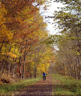 Following the Train WestStavich Recreation Trail in western Pennsylvania The active railroad runs alongside the interurban line that has been converted to the trail |