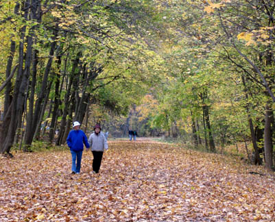 Autumn on the YoughIn early autumn the trail is covered in leaves. |