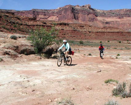 Tuesday April 24: An easy day of riding on the White Rim, mostly level and not too long. See the pictures, lots of spectacular rocks and flowers. | ||
