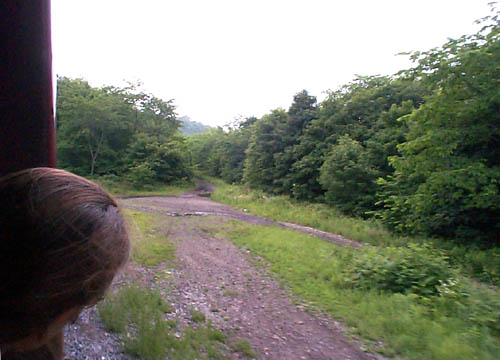Shirley Hollow embankment, looking east at the Continental Divide as Jim explains how the Atlantic drainage is winning over the Mississipi drainage... |